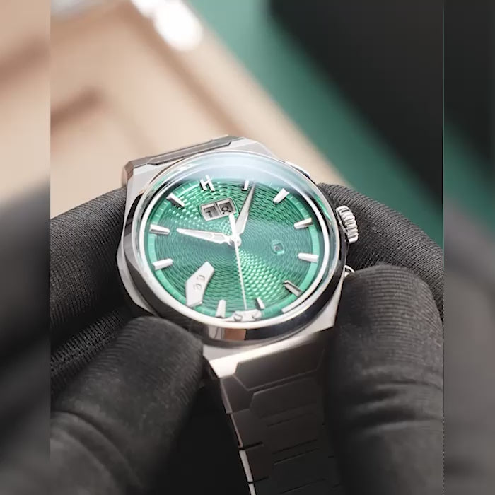 Whether styled with tailoring or streetwear, the green guilloché dial gives the watch a rare, collectible look at an accessible price point. It speaks to those who appreciate design, texture, and colour as much as they value comfort and durability in a daily timepiece.